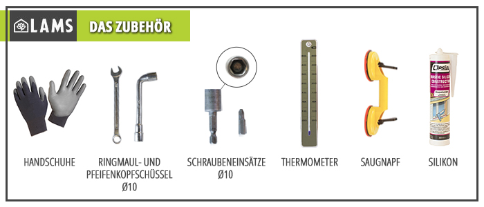 Da wir nicht wollen, dass ein Mangel an Werkzeugen zwischen Ihnen und der Montage Ihres Gewächshauses im Wege steht, schenken wir Ihnen das notwendige Zubehör für den Zusammenbau Ihres Gewächshauses, sowie ein Thermometer.