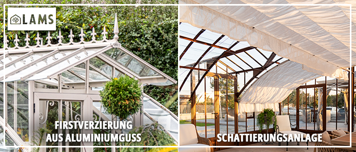 LAMS, seit fast 30 Jahren ein Spezialist in der Herstellung von Gewächshäusern und Wintergärten, stellt Ihnen sein Know-How zur Verfügung: Finden Sie in unserem umfangreichen Angebot an Qualitätsgewächshäusern aus französicher Kreation und Herstellung das Gewächshaus, das zu Ihnen passt.