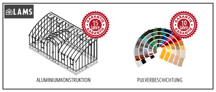 • Aluminium-Konstruktion, 15 Jahre Garantie