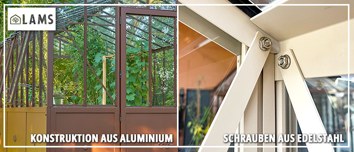 Ihr LAMS-Gewächshaus ist in naturfarbenem oder lackiertem Aluminium erhältlich.