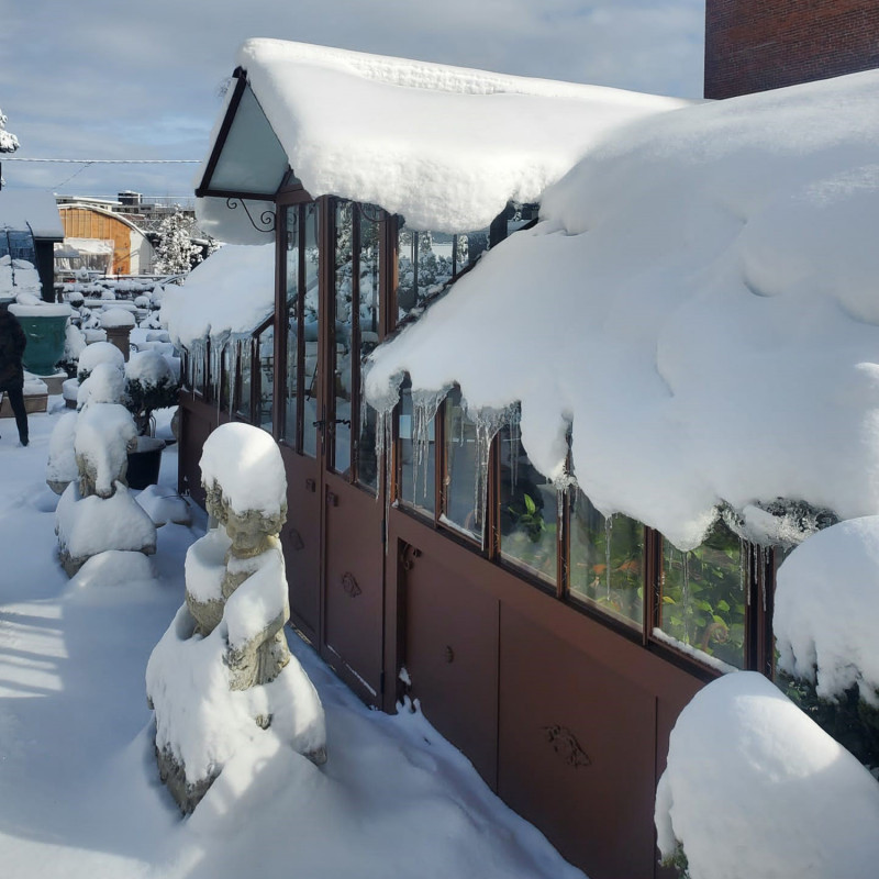 Die 4 mm dicke Verglasung aus Sicherheitsglas wird mit Edelstahlclips befestigt, um eine einfache Montage zu ermöglichen. Das gerundete Dach besteht aus kleinen, ziegelförmigen Glasscheiben, um den Charme der Gewächshäuser von früher zu erhalten.