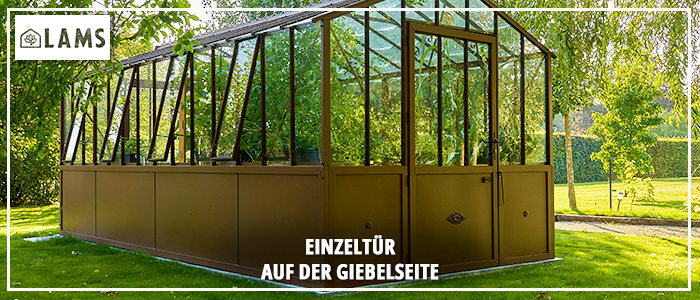 - Eine Einzeltür an der Giebelseite Ihrer Wahl, mit Schloss.