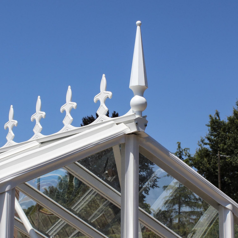 Firstferzierung aus Aluminiumguss und in der Farbe Ihres LAMS 2 Kapellen Gewächshauses lackiert.