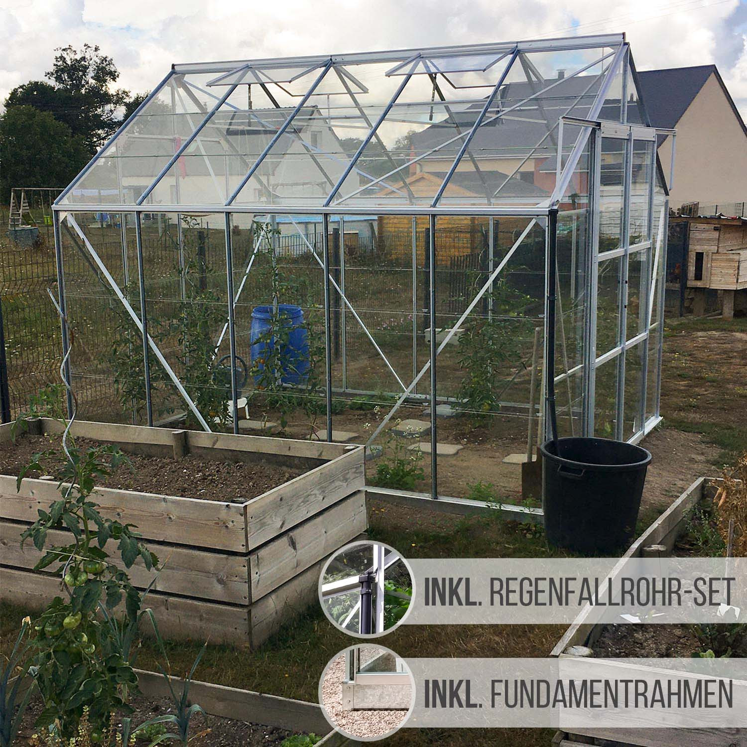 Gewächshaus LAMS Laurus B.2,55 m x L.3,17 m - Firsthöhe 2,53 m - Traufhöhe 1,60 m - Durchsichtiges Sicherheitsglas - Inkl. Fallrohre und Verbindungen - Inkl. Fundamentrahmen