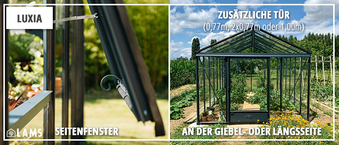 DIE OPTIONEN FÜR IHR LUXIA-ANLEHNGEWÄCHSHAUS