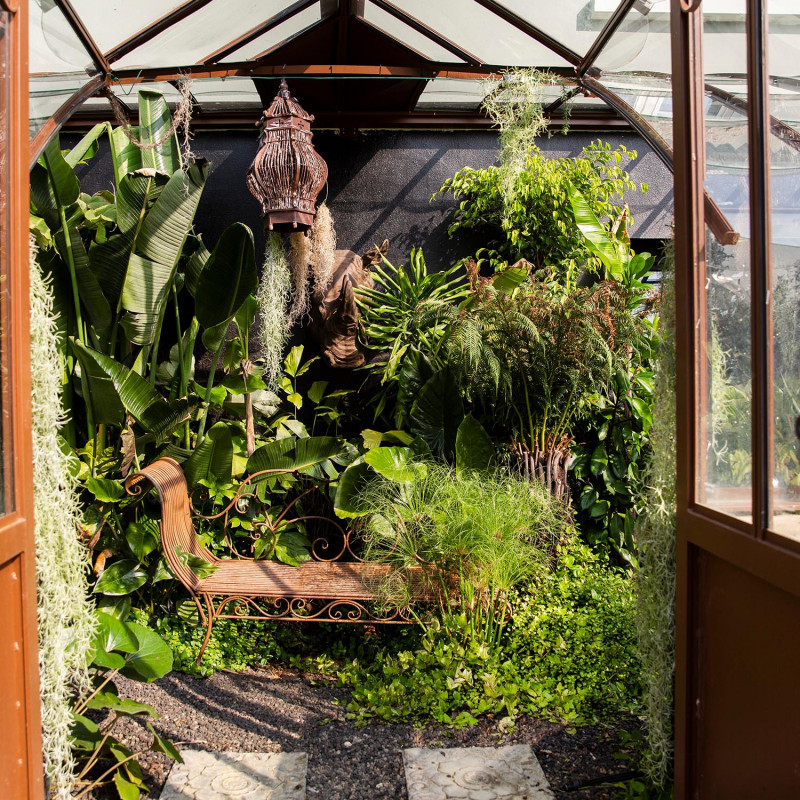 Die Vintage-Gewächshäuser der Marke Lams, getreu dem Stil des goldenen Zeitalters der industriellen Revolution, verbinden die Sorge um Ästhetik mit einer rigorosen Materialauswahl: