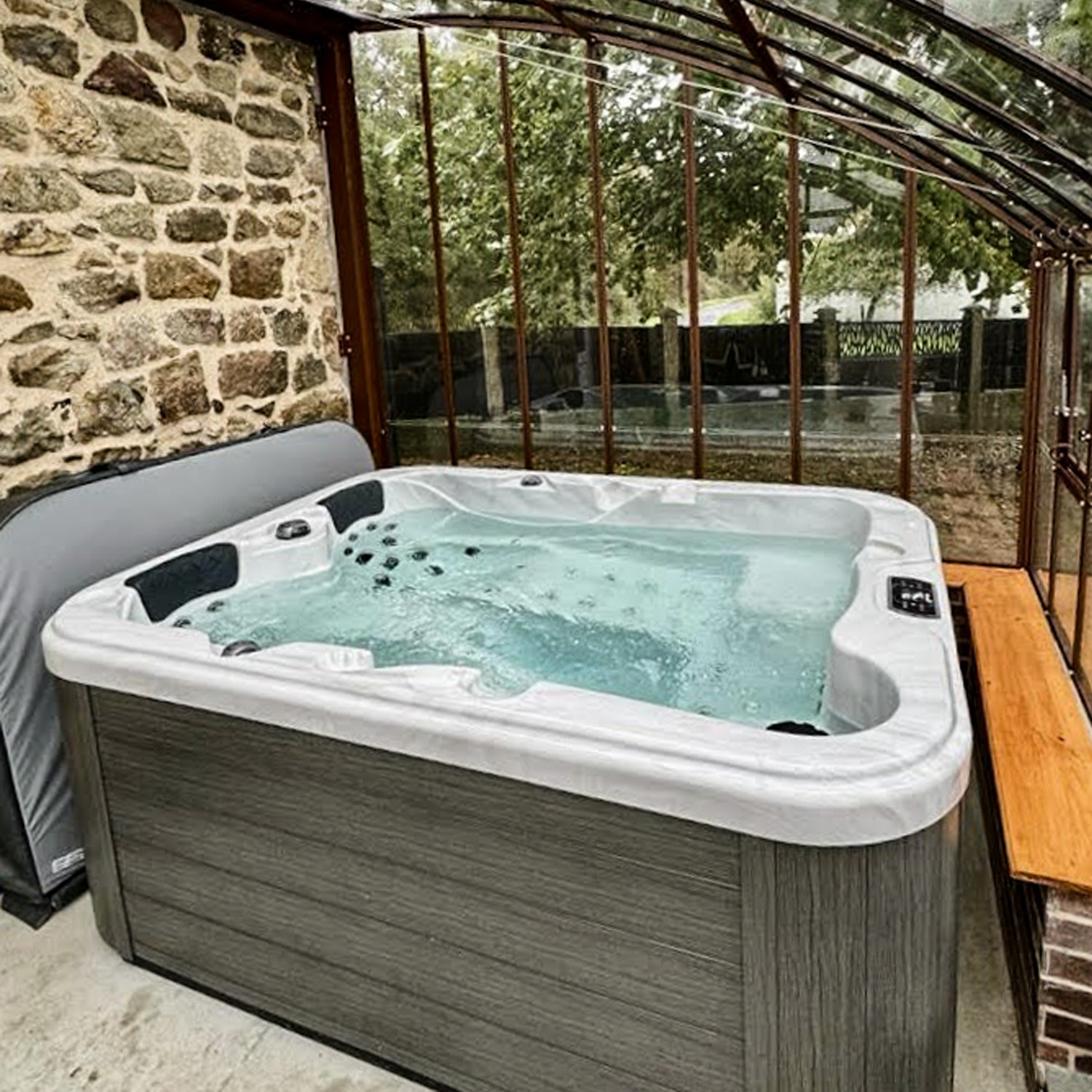 Gestalten Sie Ihren Wintergarten MONTESQUIEU nach Ihren Wünschen und der Beschaffenheit Ihres Gartens, dank der vielen angebotenen Optionen (zusätzliche Türen, Lackierung, Schattierungsanlage, mit Mauer- oder Aluminiumsockel,...).