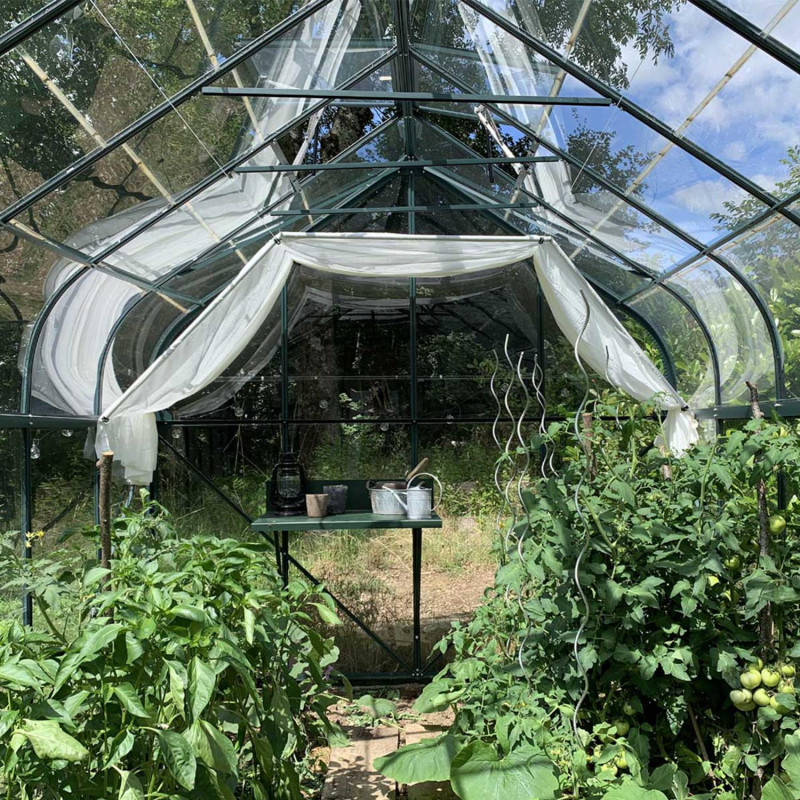 Schattierungsanlage als komplettes Set: Befestigungselemente und Schattentuch vorgesehen für die Gewächshäuser Carvi, Laurus und Aloe der Natura-Kollektion. Wählen Sie Ihr Gewächshaus-Modell und Farbe.