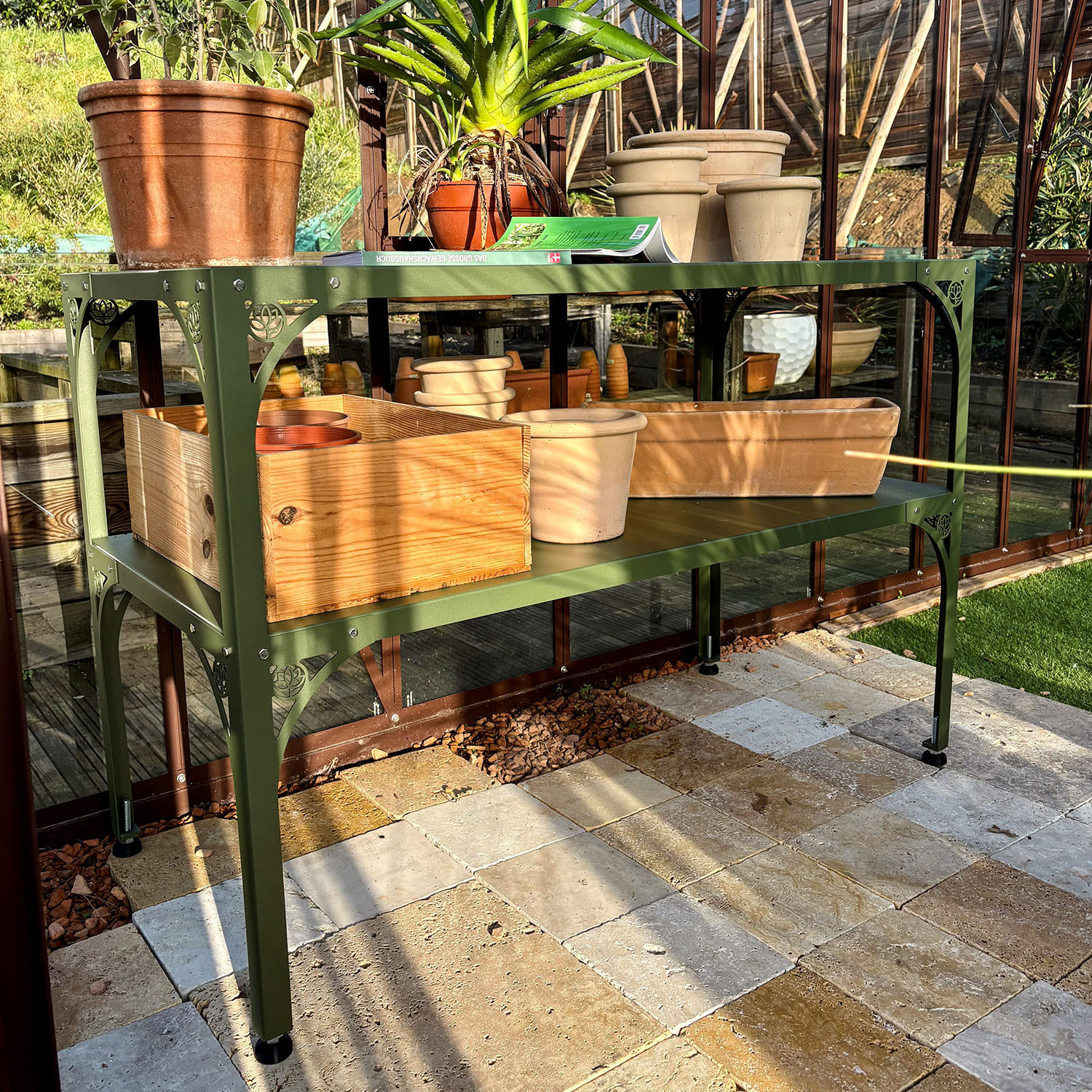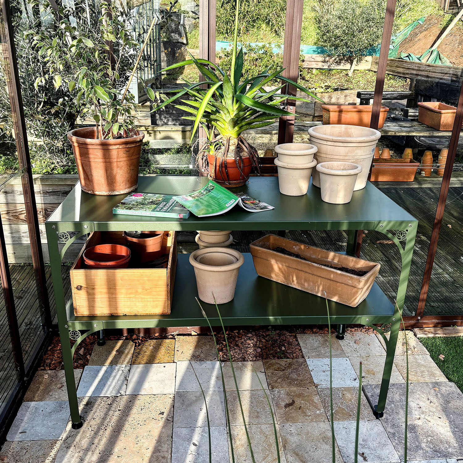 Dieser Tisch erleichtert die Einrichtung Ihres Gewächshauses. Er ist ideal, um die Fläche für die Aufbewahrung und Aufzucht Ihrer Pflanzen zu vergrößern.